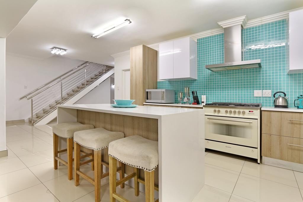 Perfect for either summer or winter, this magnificent villa has a built-in fireplace on the second floor and a gas fire heater at the entrance to keep the entire home warm and cosy. With its many glass doors and wide windows, the house remains cool in summer thanks to the cool and refreshing ocean breeze. Guests also have access to complimentary Wi-Fi and DStv connection.